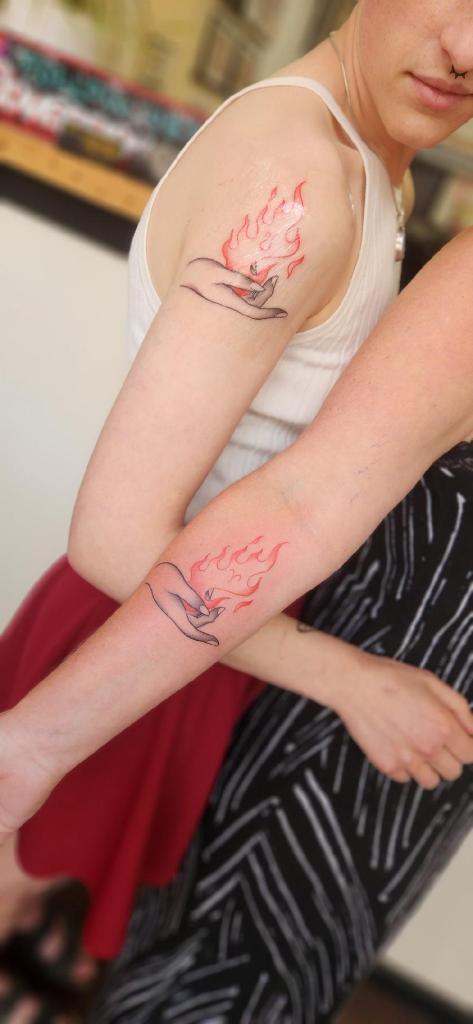 within the ink, and then this needle, as it attaches itself to the skin, it brings life to show on the outside what one has within. She burns inside and shares her flame, and only those can see it those who know the touch of the fire those who also breathe it. with this ink, she shares on the outside of her skin who she is and what she brings, and that fire that burns within is the fire that the souls around her .