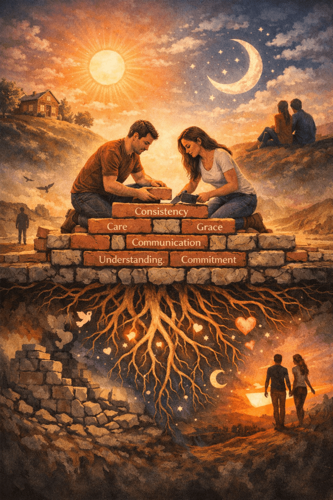 Two people who commit to consistency and care create a space where both can rest, expand, and evolve. The relationship becomes a living structure—strong enough to hold joy, grief, change, and time.