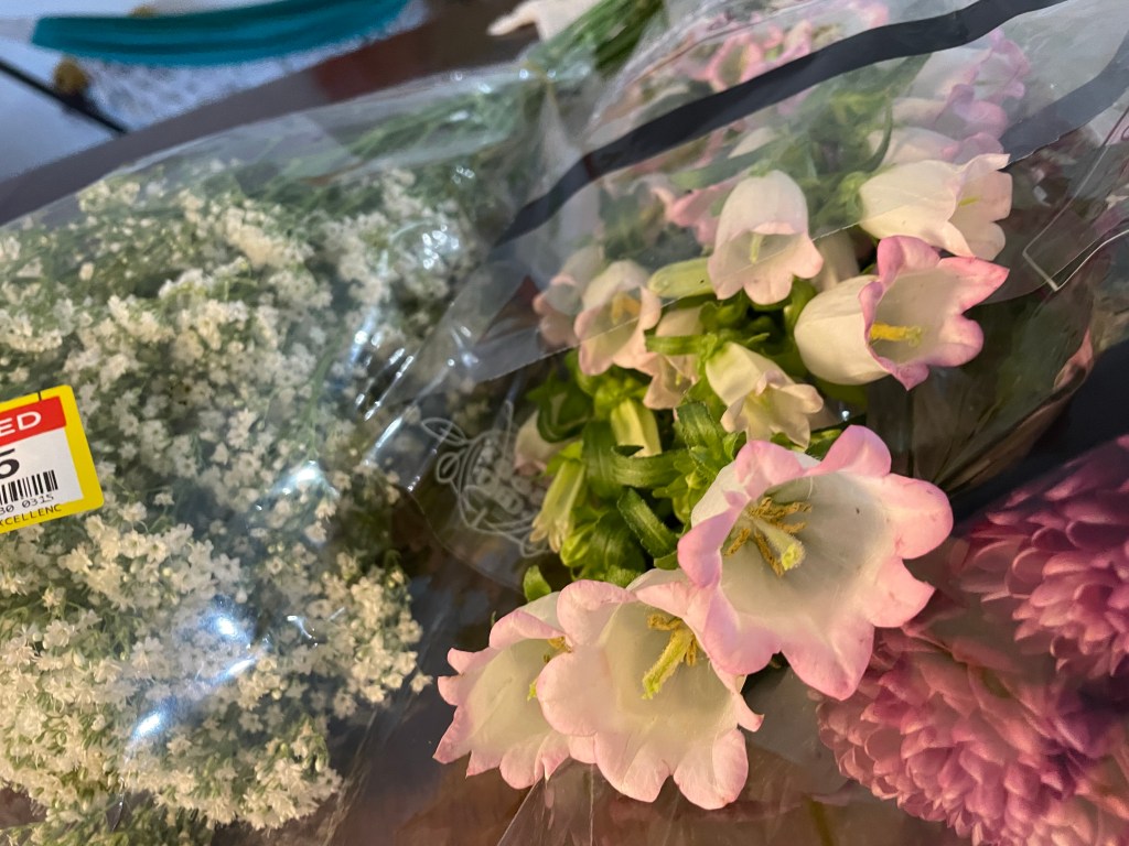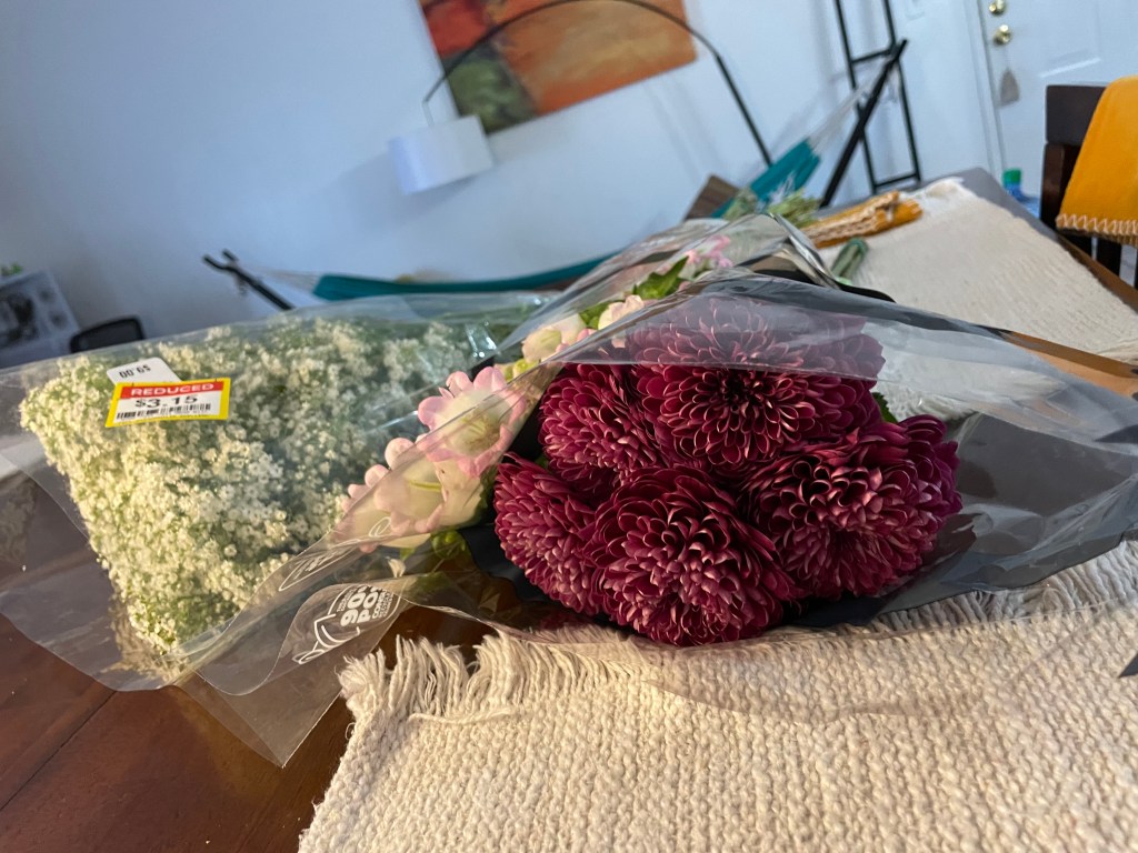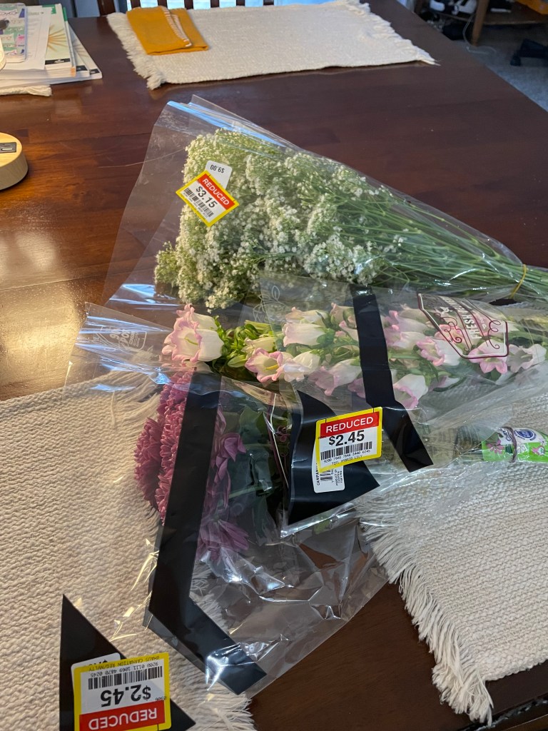 Today when I was at the store, I only had enough money to buy the few things I really needed. But I still wanted flowers. So I went to the back of the store, where the discounted bouquets are.